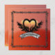 Are you a biker chick planning your ultimate cool and unique biker wedding with your man? this super cool Flames Heart Rock N Roll Biker Wedding Invitation is the answer! it will wow all ya guests and it's a perfect keepsake for your big day as a biker bride! Hit the open road with a cool rock and roll biker wedding invitation that reflects your love as a couple for your bike(s). A graphic outlined heart is accented by flames and cool wings against a rich red burst background with a top and bottom border of wires Available with matching products.