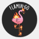 Flamin-go Funny Flamingo Pun Dark BG Classic Round Sticker