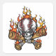 A flaming baseball skull with baseballs bats and flames. This design looks really effective on these Stickers
