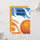 Perfect party invitations for a basketball fan or basketball player. The front of the invitation features a basketball with white flames surrounding it on a blue and orange background. The back of the invitation features all the information for the upcoming celebration with orange text on a black background. The colour of the text can be changed to suit your own needs and style. All text is fully customisable for your own party.