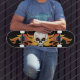 Fanged skull with colourful flames is a wicked and unique skateboard design.