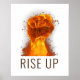 Digital illustration features large fist of fire and flames with "rise up" text in brown modern font. What better way to make your stand?
