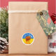 Show your support for Ukraine with this sticker / seal featuring round cutout of Ukraine's flag with flaming fist and "Glory to Ukraine", one of the country's most popular slogans, in curved text.