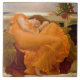 An allegory for Flaming June. Vintage portrait of a beautiful redhead wearing a vibrant orange gown of translucent fabric. She rests on a marble bench with more fabric as cushion. In the background moonlight is reflected by the ocean. From an original 19th century (1895) painting by Frederic Leighton. All Rights Reserved © 2015 padre art