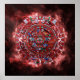 Replica of the Mayan Calender, but modernised with coloured chrome metal and flaming background. Source of the popular 2012 doomsday prophecy.
