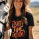 A digital illustration of the phrase Party Time Excellent in a fiery, stylised font. The letters are rendered in shades of red and orange, with flames rising from the top of each letter.