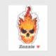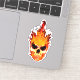 The image is a close-up of a human skull with flames licking around it. The skull is white and appears worn, with dark shading around the eye sockets and nasal cavity. The flames are orange, yellow, and red, and they appear to flicker and dance around the top and sides of the skull