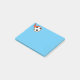 Post-it-Notes shown in blue with a flaming soccer ball print.