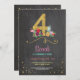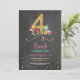 Flamingo 4th Birthday party bright chalkboard invite.