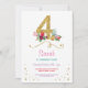 Flamingo 4th Birthday party bright invite.