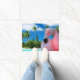 Amazing wildlife birds, flamingos. Pink flamingo, sea, palms and tropical beach.