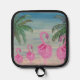 Flamingo and palm tree tropical theme kitchen pot holder. Fun beach kitchen accessory.