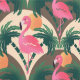 Flamingo and Palms Retro brown pattern, drawn with love in Procreate.