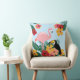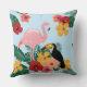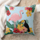 Tropical flowers, flamingo, toucan cotton throw pillow.