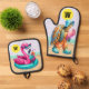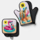 Flamingo and Turtle Fun Oven Mitt & Pot Holder Set