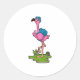 Flamingo as Hiker with Backpack Classic Round Sticker