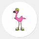 Flamingo as Skater with Roller skates & Helmet Classic Round Sticker