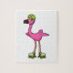 Flamingo as Skater with Roller skates & Helmet Jigsaw Puzzle