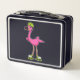 Flamingo as Skater with Roller skates & Helmet Metal Lunch Box