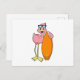 Flamingo as Surfer with Surfboard.PNG Postcard