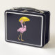 Flamingo at Raining with Umbrella Metal Lunch Box