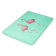 This bathmat is shown in a solid colour of sea green with a cute tropical flamingo print.
