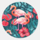 Flamingo bird, flamingo flower, monstera leaves and hibiscus were painted with watercolors on paper, then scanned and the seamless pattern was made in Photoshop.