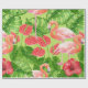 Pattern made of painted with watercolor monstera leaves, hibiscus flowers,flamingo flowers and birds