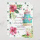 This flamingo-themed party invitation is perfect for birthdays, pool parties, cookouts and more! The tropical flowers, palm trees and flamingos make this party invitation stylish and fun.