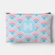 Flamingo Blush Pink Blue Geometric Waves Pattern Accessory Pouch