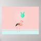 Pink flamingo bird holding a cactus balloon. Minimalist design perfect for interior design.