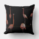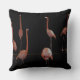 Abstract art picture of flamingo's on a pillow. Black background with orange/yellow and white flamingo birds.