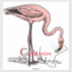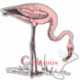 Art Illustration of pink Flamingo drinking a dirty olive martini, customise with your own greeting, name, message, etc