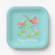 Flamingo Fandango Duo Happy Birthday square Paper Plate