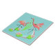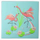 A bright, colourful mid-century inspired design with a retro touch: featuring pink flamingos "dancing" against a water lily covered turquoise background. A customisable design for you to personalise with your own text, images and ideas. An original digital art image created by Jess Perry at QuirkyChic Retro.