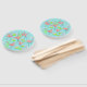 Lively pink flamingos flap their wings and ruffle their feathers against a blue watery background with reeds and water lilies. A stylish design with a retro touch which can be personalised with your own text, images and ideas. An original digital art image created by Quirky Chic.