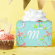 A trio of pink lively flamingos flap their wings and ruffle their feathers against a blue watery background with reeds and water lilies. A stylish design with a retro touch which can be personalised with your own text, images and ideas. An original digital art image created by Quirky Chic.