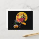 Flamingo | Flamingo Riding Broom Pumpkin Halloween Announcement Postcard
