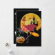 Flamingo | Flamingo Riding Broom Pumpkin Halloween Holiday Card