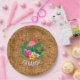 Flamingo Flowers on Wicker Pattern Paper Plate