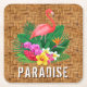 Flamingo Flowers on Wicker Pattern Square Paper Coaster