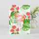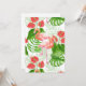 Watercolor pattern design with flamingo flowers and birds, monstera and palm leaves.