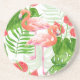 Watercolor pattern design with flamingo flowers and birds, monstera and palm leaves.