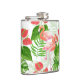 Watercolor pattern design with flamingo flowers and birds, monstera and palm leaves.