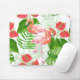 Watercolor pattern design with flamingo flowers and birds, monstera and palm leaves.