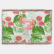 Watercolor pattern design with flamingo flowers and birds, monstera and palm leaves.