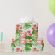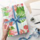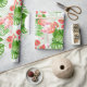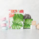 Watercolor pattern design with flamingo flowers and birds, monstera and palm leaves.