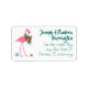 Pink flamingo address labels, or return address labels. Wide, white labels with pink flamingo and sea stars. The bird wears a wreath of hibiscus and holly leaves which makes the design appropriate for the holiday season. Green text can be added in up-to five lines. Names are in bold hand-written printing with address in thinner print beneath. The design works year round as the reference to Christmas is subtle.