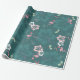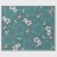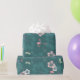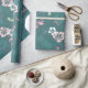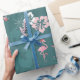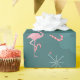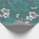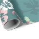 Flamingo Holiday Wrapping Paper. Pink, Blue, Hibiscus Flowers with Happy Flamingos holding Candy Canes with a Santa hat.