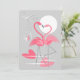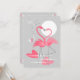 A pair of pink flamingos with necks curved to form a heart shape stand in the sea on a moonlit beach. A stylish, romantic design with a retro touch created in a pink, grey and white colour scheme with a colour-change background. A customisable design for you to personalise with your own text, images and ideas. An original digital art image.